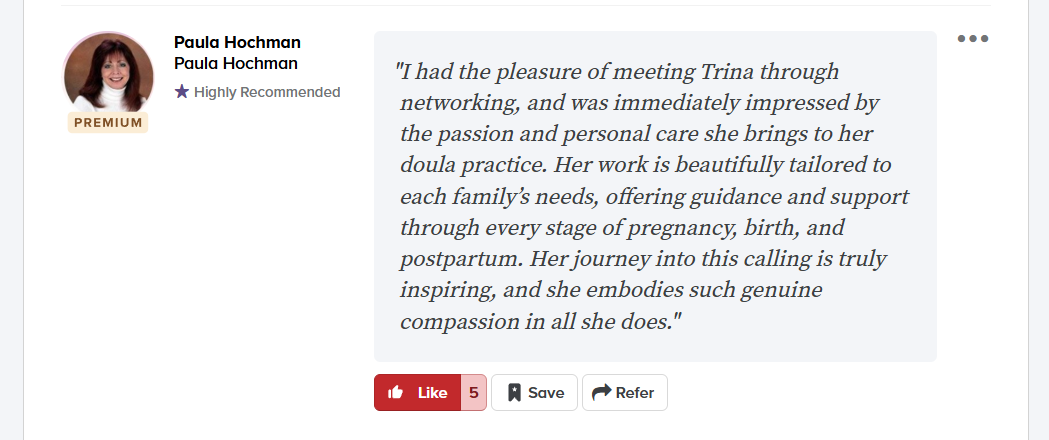 Hi, I am Trina, a certified holistic doula and perinatal wellness birth worker.