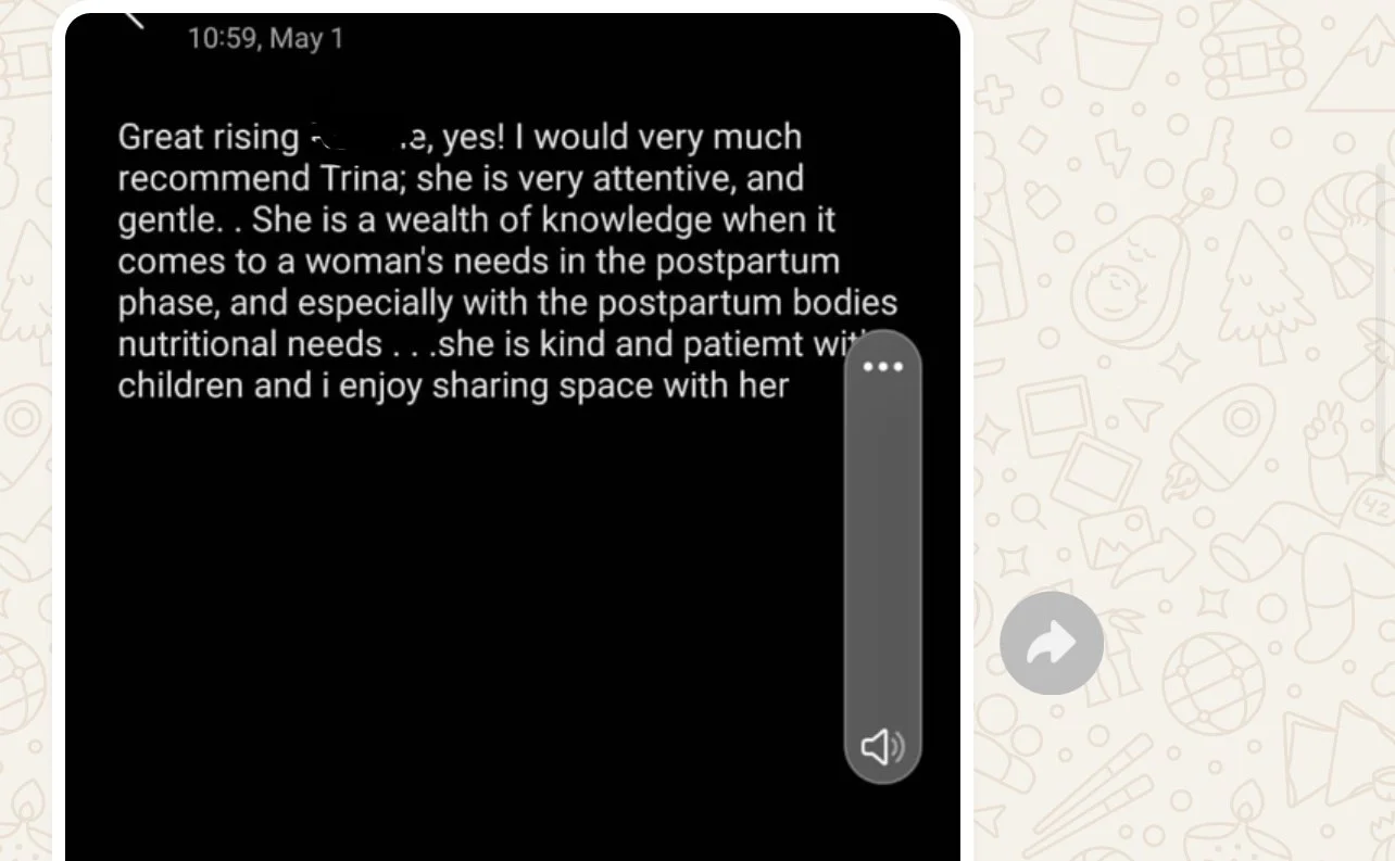 What the People have to say “Trina’s relaxation techniques work immediately.”— Birth Client— Postpartum Wellness Client— Postpartum Wellness Client